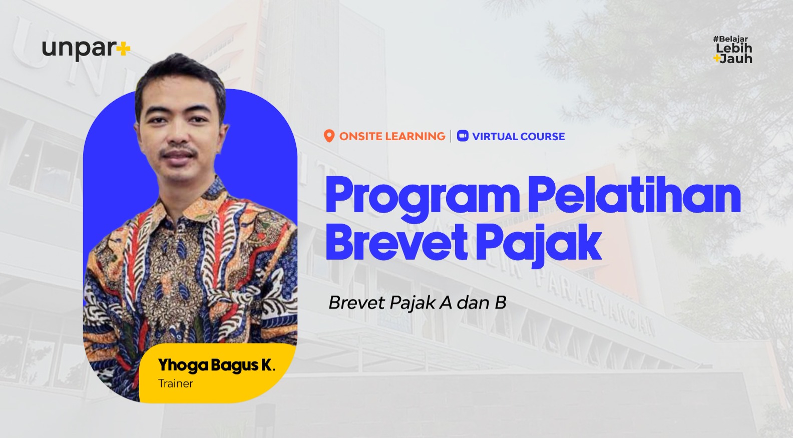 Yhoga Bagus Kusuma merupakan praktisi perpajakan dengan pengalaman lebih dari 15 tahun di lingkungan Direktorat Jenderal Pajak (DJP). Ia menempuh pendidikan dasar hingga menengah di Surabaya, kemudian melanjutkan pendidikan vokasi Diploma I di BDK IV Malang dan Diploma III Akuntansi di Sekolah Tinggi Akuntansi Negara (STAN), serta meraih gelar Sarjana (S1) dari Universitas Terbuka. Dalam perjalanan kariernya, Yhoga telah bekerja di berbagai unit DJP, antara lain KPP Wajib Pajak Besar Dua, Kantor Pusat DJP, KPP Pratama Surabaya Sukomanunggal, KPP Pratama Surabaya Rungkut, dan saat ini bertugas di KPP Madya Bandung sebagai Account Representative. Pengalaman akademik dan praktik lapangan yang komprehensif menjadikannya pengajar yang mampu menyampaikan materi Brevet Pajak secara aplikatif, kontekstual, dan sesuai dengan regulasi perpajakan yang berlaku.